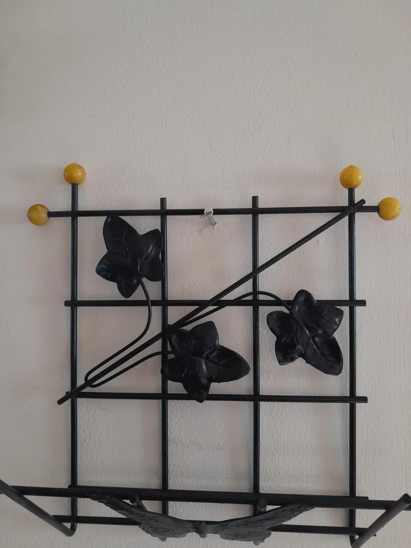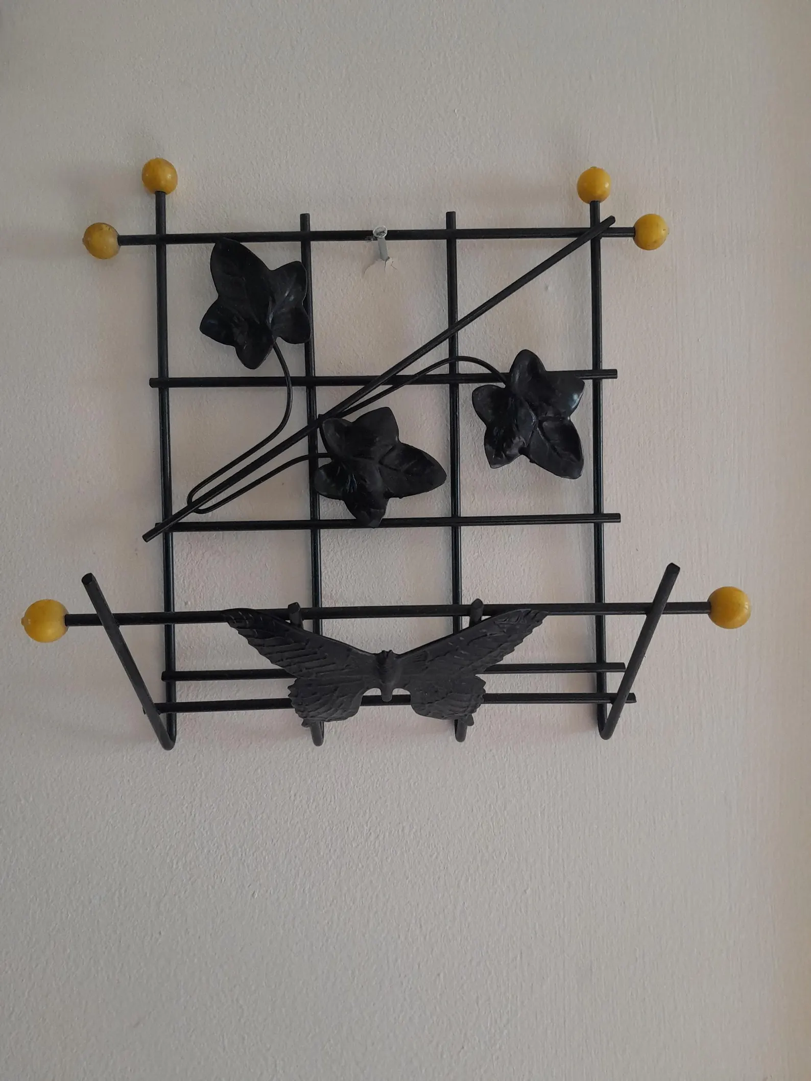 Vintage wire letter rack in atomic design with butterfly and leaf decoration. In good used vintage condition, no rust and straight.