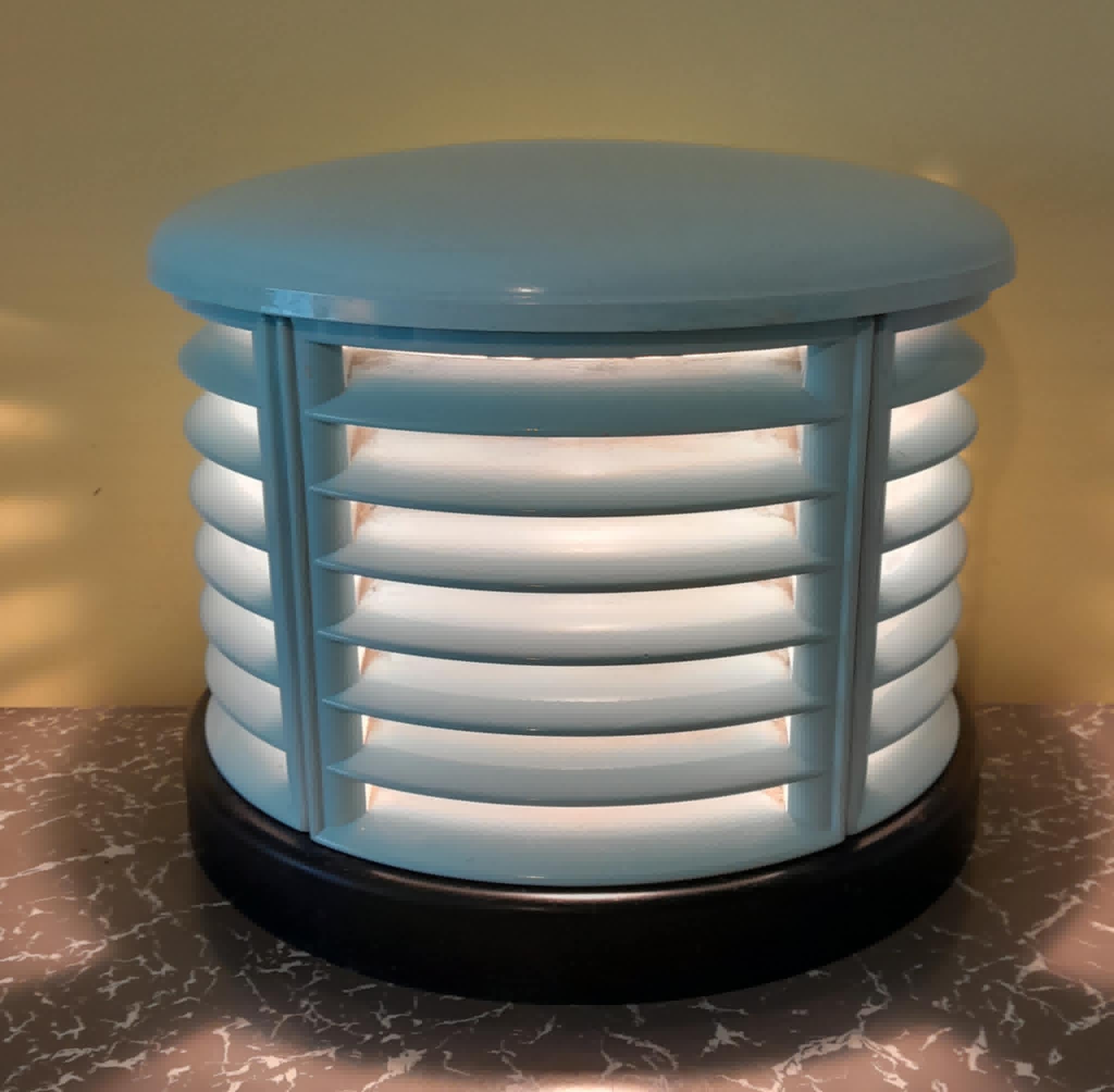 This HMV beehive heater has been converted into a lamp making it into a useable, decorative addition to your home. Production of these heaters started in 1947 and continued throughout the 1950’s. Made from Bakelite, it been resprayed as some point in sky blue and looks lovely lit up. In overall good condition, there a few marks which can be seen in the photos. Measurements: 28 cm tall, 33 cm wide and 25cm deep.