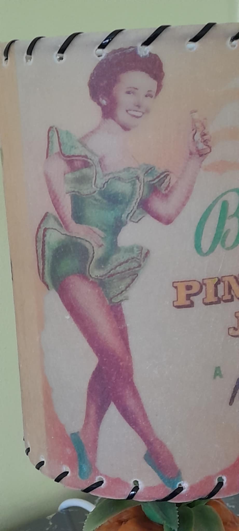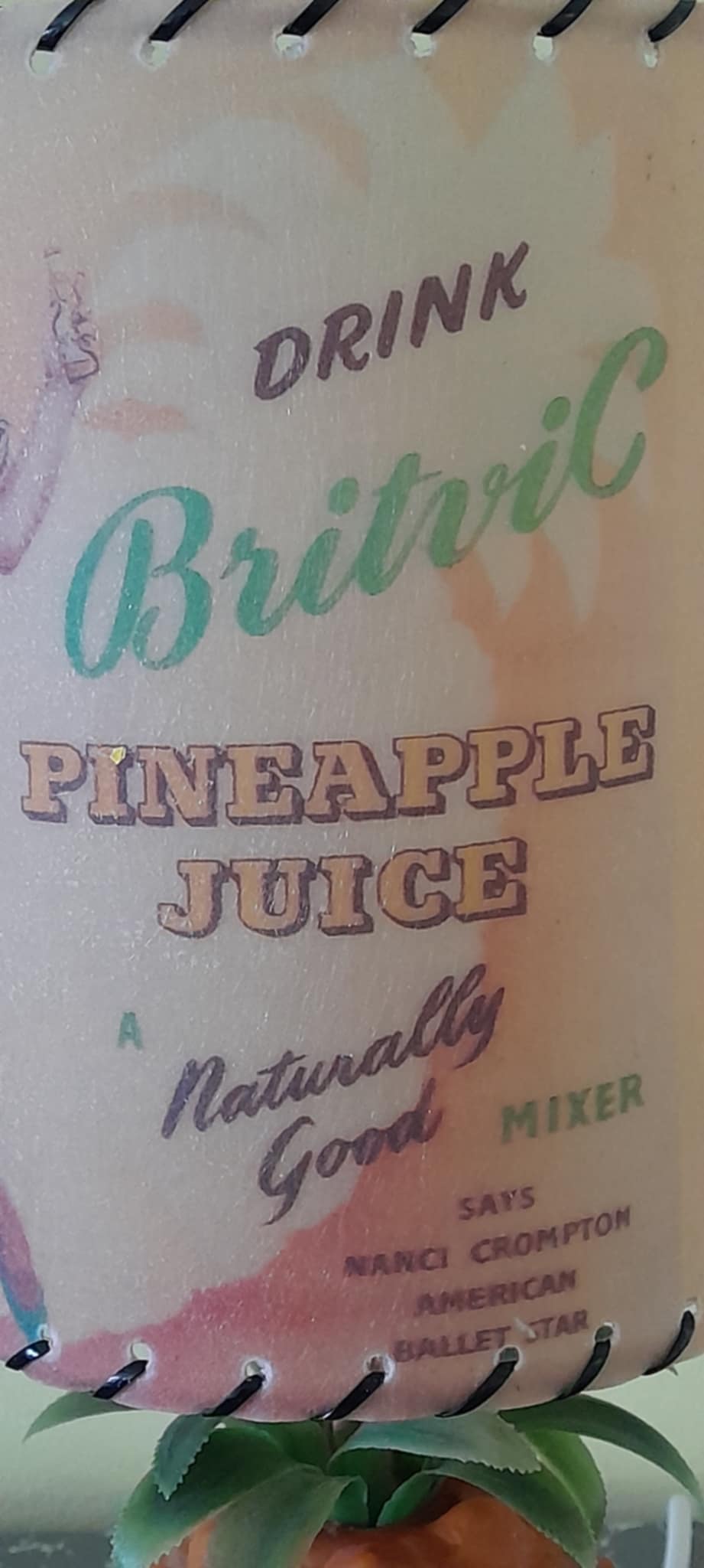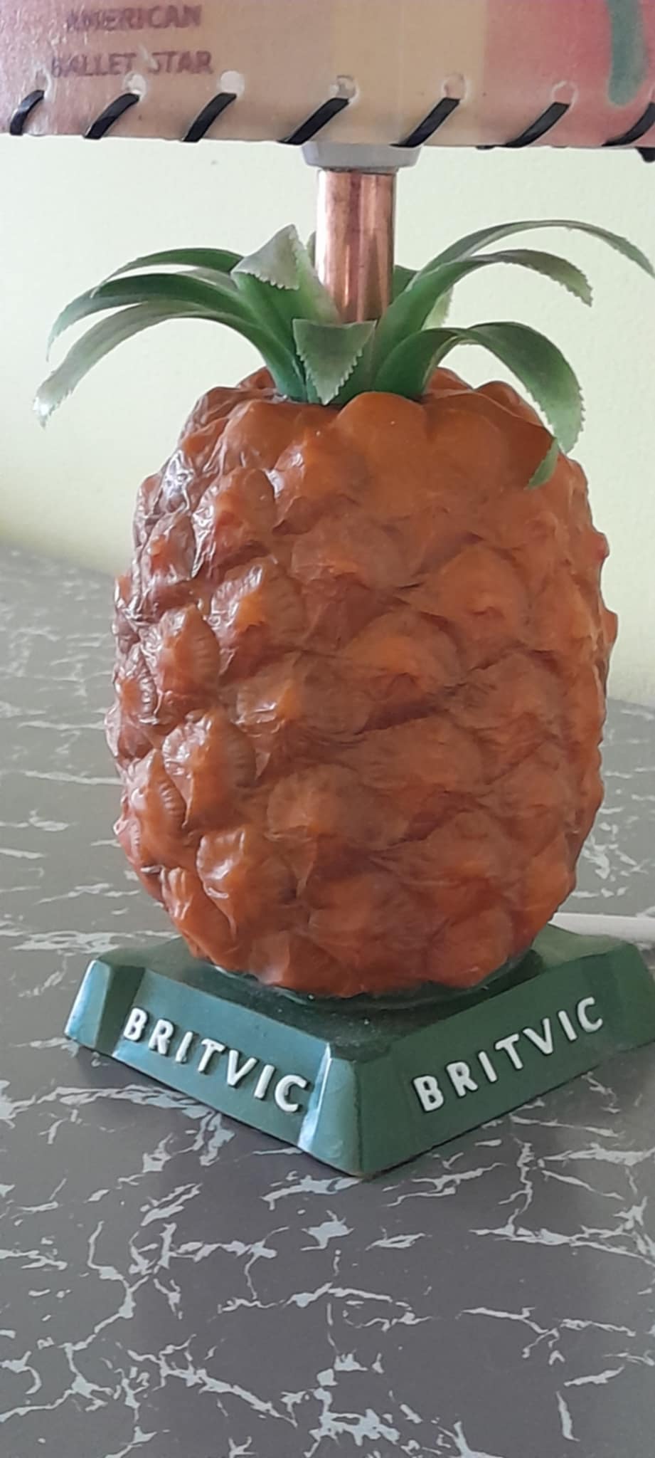 A rare mid-century Britvic pineapple lamp in great condition fully rewired, with a Retrashade fibreglass shade depicting a vintage Britvic advert. Great addition for your home bar