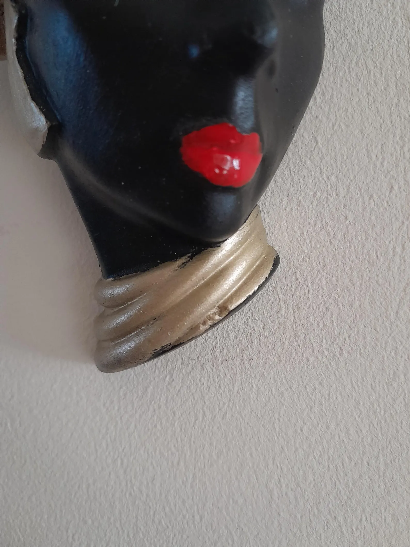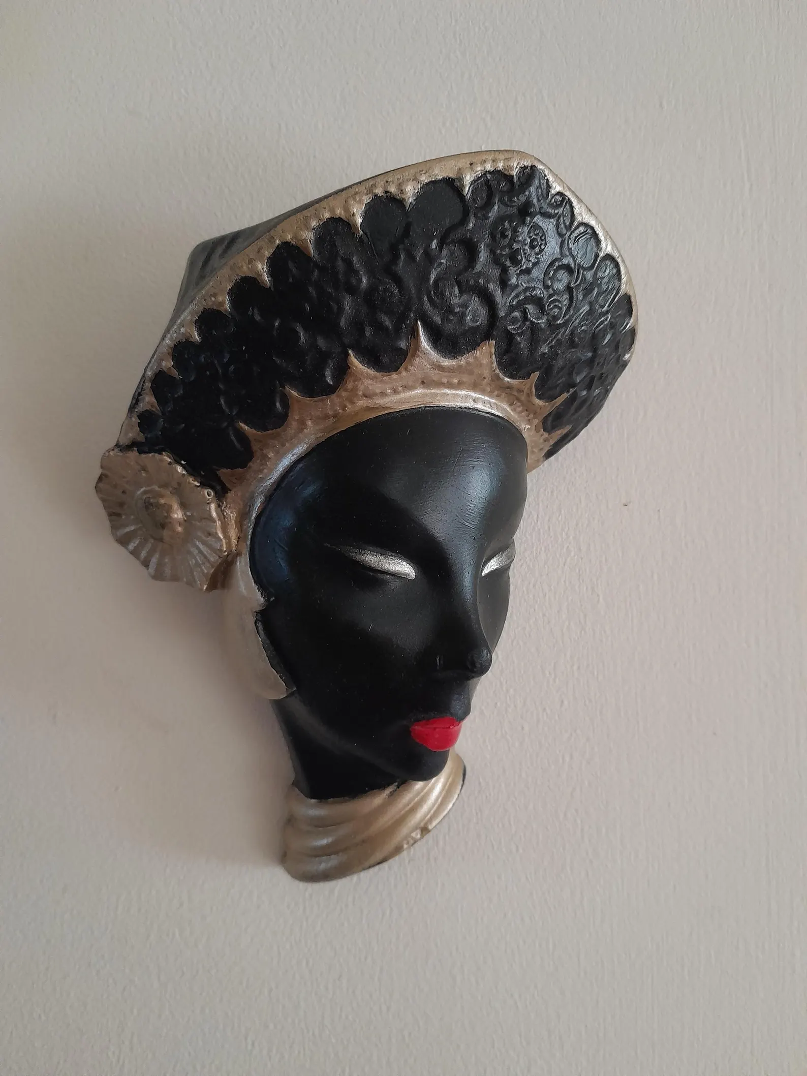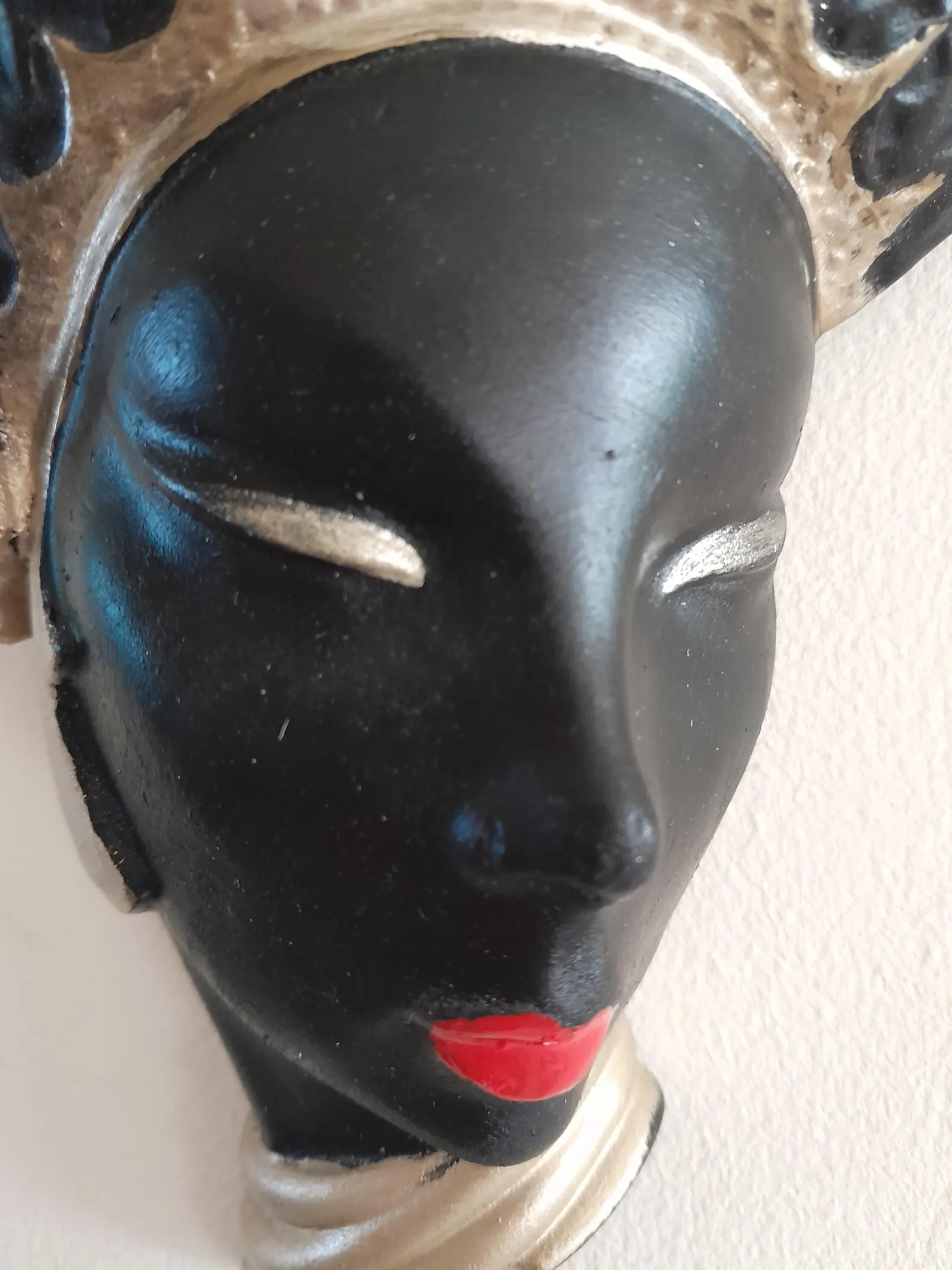 Stunning and unusual Vintage Oriental lady chalkware wall mask. In very good condition. Please see photos.