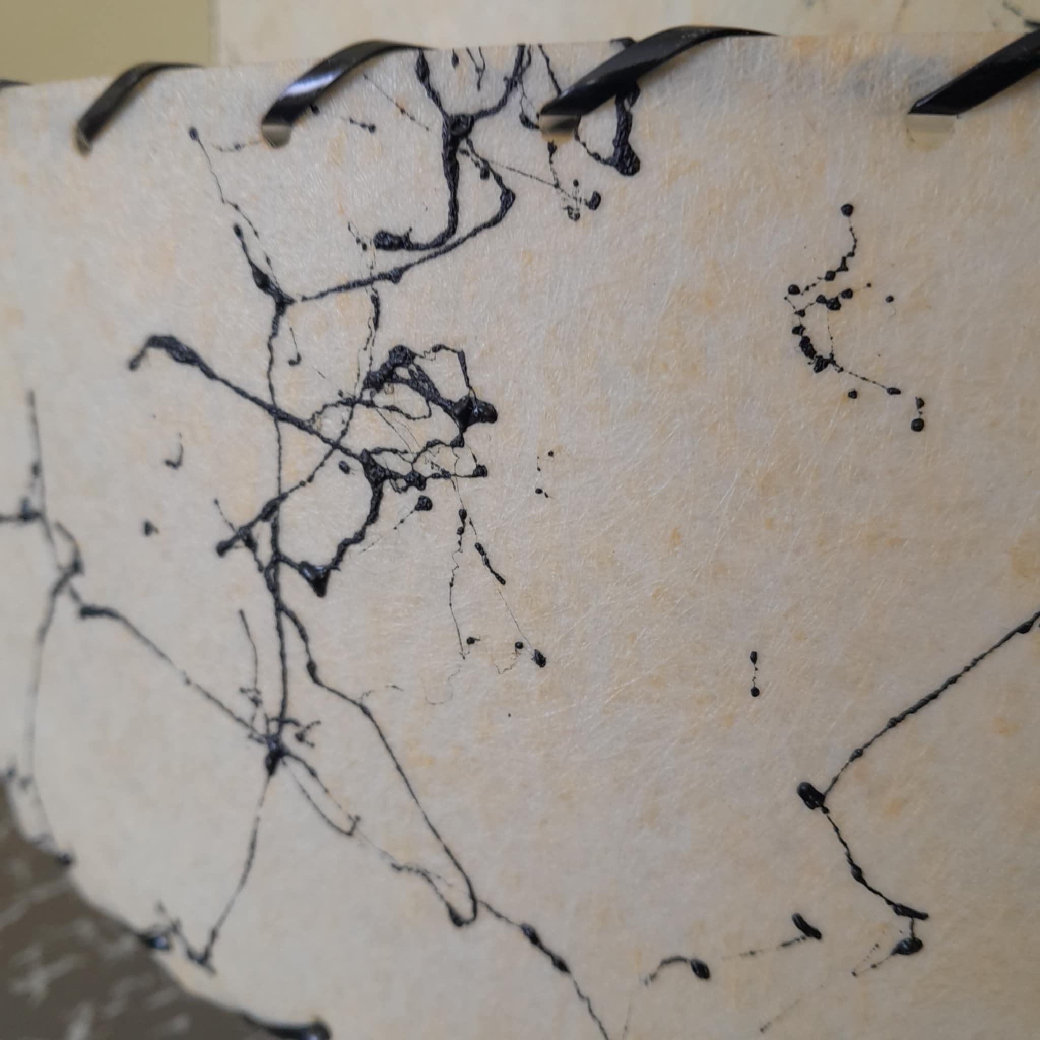 Vintage American 3 tier shade, in cream with soft lemon flack and black marble effect. finished with black lace this shade is for a lamp that has a harp it is NOT for UK fittings, this shade is in perfect condition.